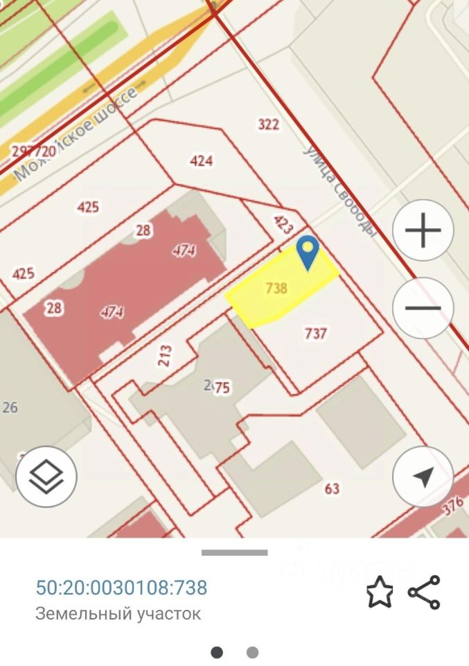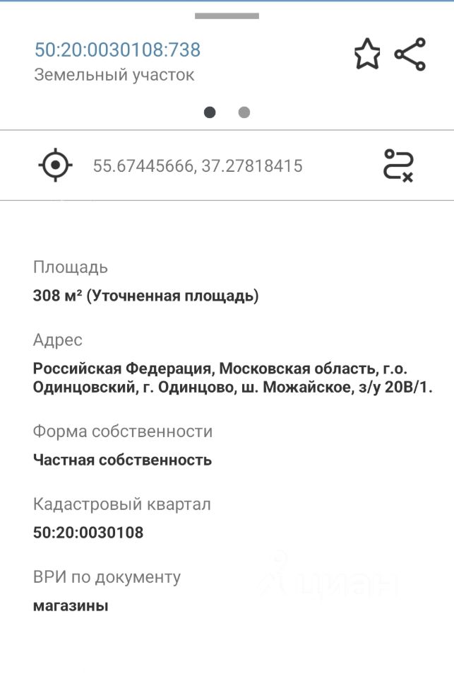 Земельный участок 3,1 сотки в собственности коммерческого назначения (магазины). Первая линия Можайского ш. и ул. Свобода. 150м от МЦД Одинцово. Кадастровый номер 50:20:0030108:738. Возможно строительство магазина, нестационарного торгового павильона, размещение фудтраков, шиномонтажа, автомойки. К участку примыкает ресторан "Мидийное Место" и ТЦ "Телеграф" с большой парковкой.