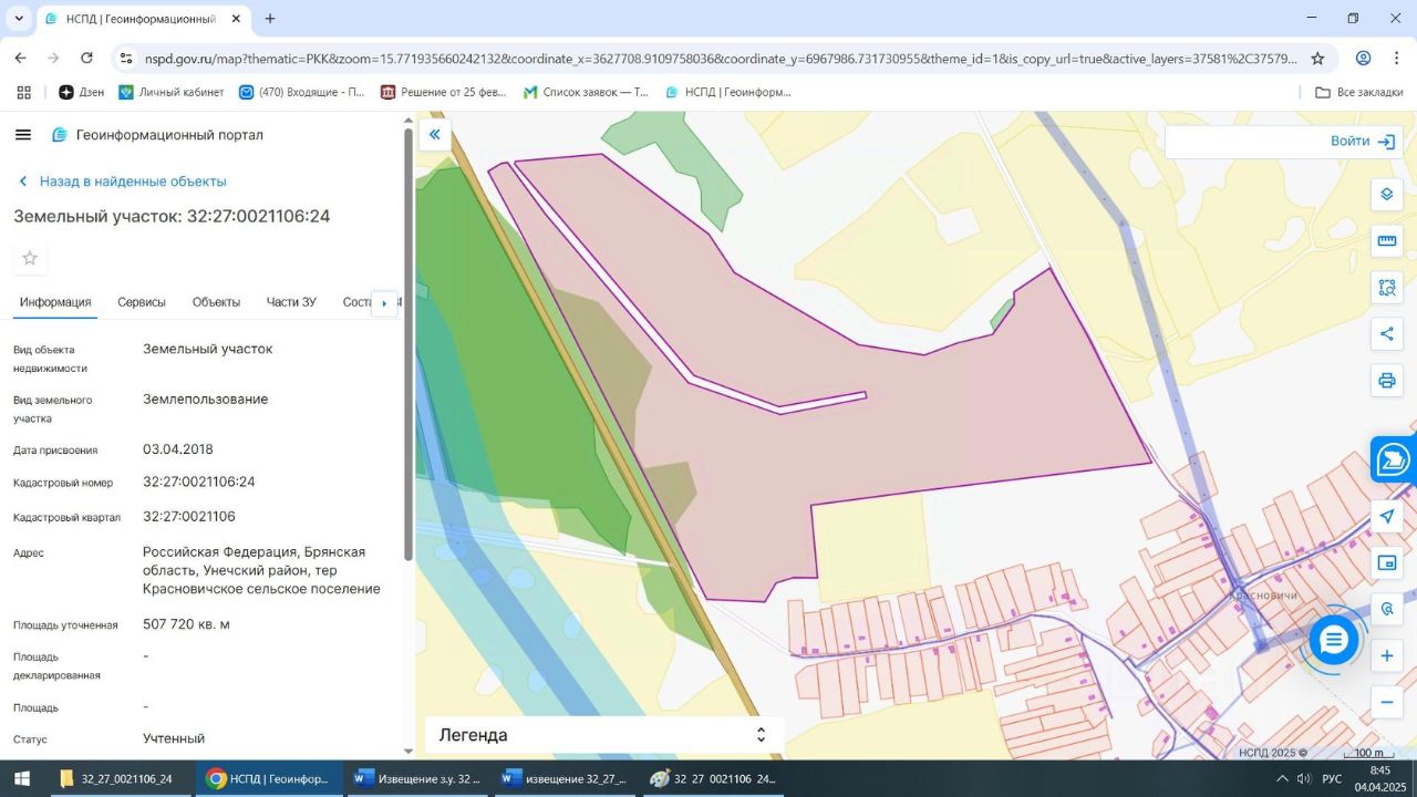 Проведение в электронной форме открытого по составу участников аукциона по продаже земельного участка с кадастровым номером 32:27:0021106:24, площадью 507 720 кв.м., с разрешенным использованием: сельскохозяйственное использование, местоположение: Российская Федерация, Брянская область, Унечский муниципальный район, Красновичское сельское поселение