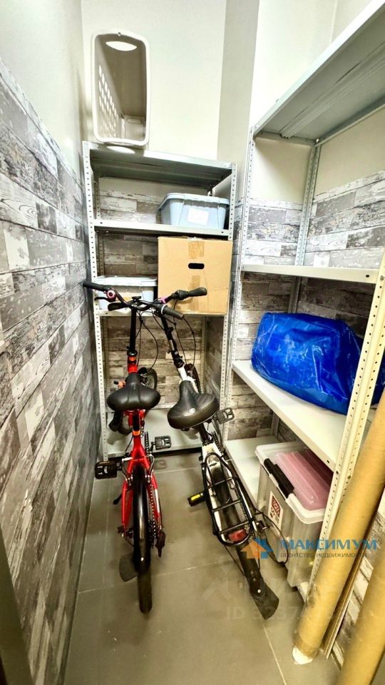 В кладовке высокий потолок, поэтому если использовать место полностью, будет гораздо больше чем 2 кв.м. Есть небольшие стеллажи.