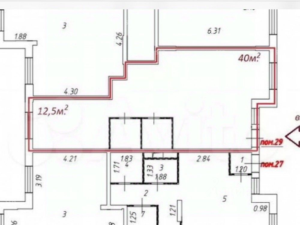 Площадь - 56 кв.м. Отдельный вход с фасада, витринное остекление. Высота потолков - 3.5 м, электрическая мощность 20 кВт, можно увеличить.