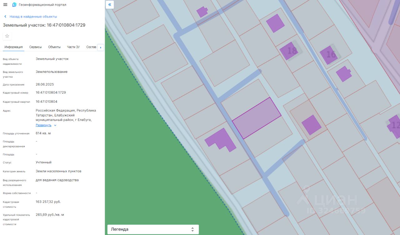 Во исполнение Распоряжения МКУ Земельно-имущественная палата Елабужского муниципального района 01-1454 от 06.08.2025 г. Лот 3: Земельный участок площадью 614 кв.м., кад. 16:47:010804:1729, расположенный по адресу: РТ, Елабужский муниципальный район, г.Елабуга, территория с/о "Гульбакча". Категория земель: Земли населенных пунктов. Разрешенное использование: "для ведения садоводства".