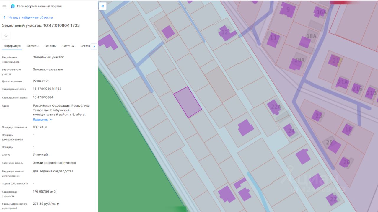 Во исполнение Распоряжения МКУ Земельно-имущественная палата Елабужского муниципального района 01-1454 от 06.08.2025 г. Лот 7: Земельный участок площадью 637 кв.м., кад. 16:47:010804:1733, расположенный по адресу: РТ, Елабужский муниципальный район, г.Елабуга, территория с/о "Гульбакча". Категория земель: Земли населенных пунктов. Разрешенное использование: "для ведения садоводства".