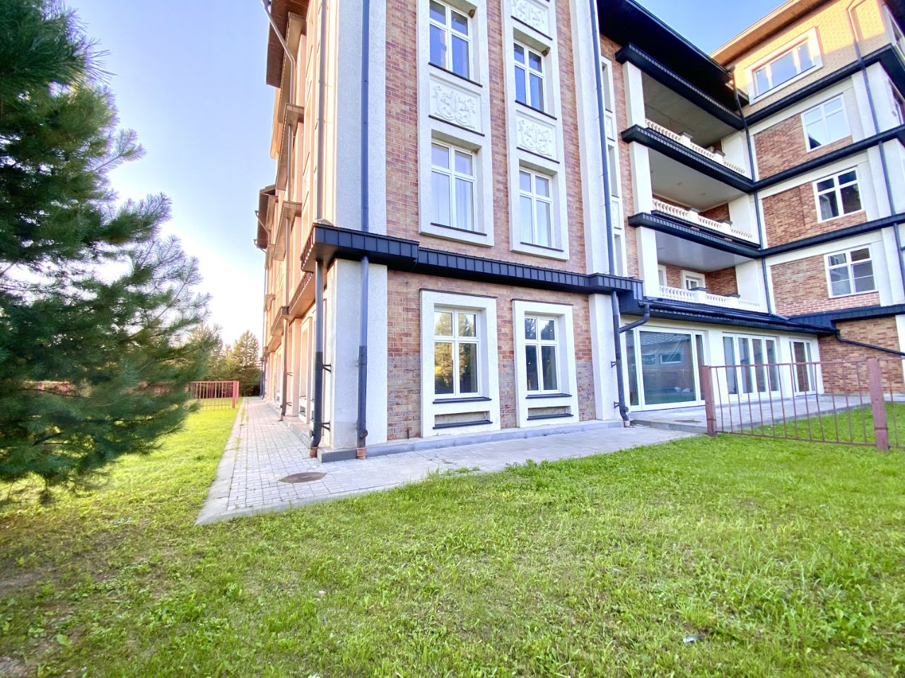 В продажу предлагается 4-х комнатная квартира (не апартаменты) с выходом на собственный участок в строго охраняемом коттеджном поселке Азарово. Высокие потолки, панорамное остекление, выход на зеленый газон с туями. Можно сделать 2-3 спальни и 3 санузла, 2 гардеробные комнаты, постирочную.