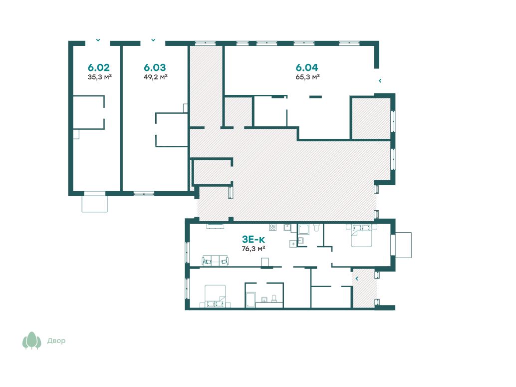 Продаётся апартамент с 3 комнатами общей площадью 77.00 кв. метров на 1 этаже жилого квартала комфорт-класса "Равновесие".