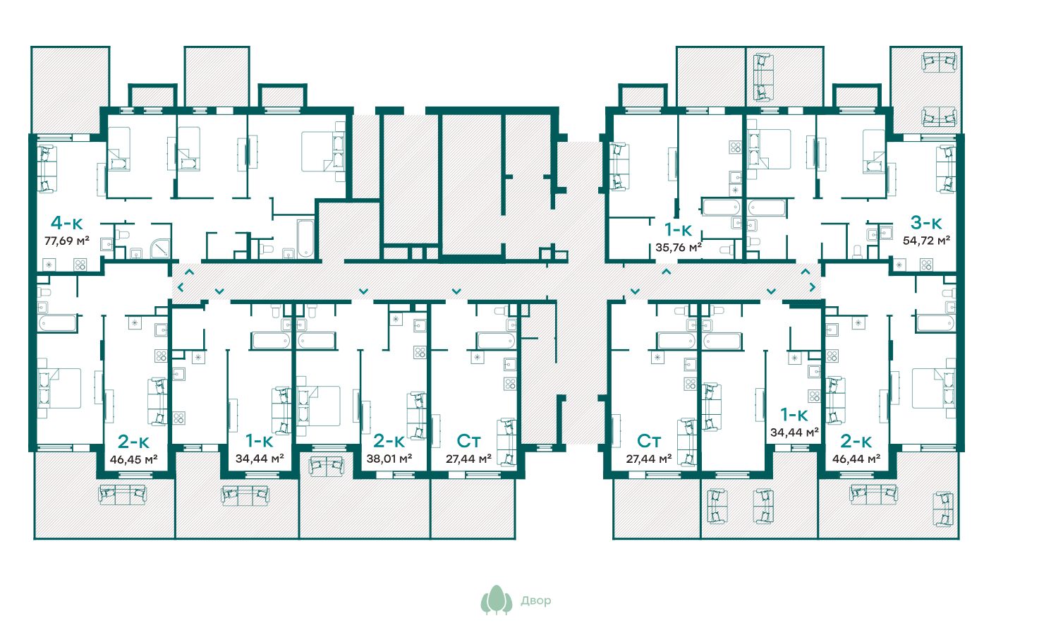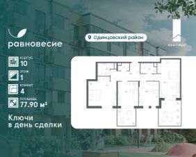 Продаётся квартира с 4 комнатами общей площадью 77.90 кв. метров на 1 этаже жилого квартала комфорт-класса "Равновесие".