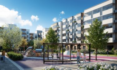 На территории комплекса будет возведен детский сад на 360 мест, а на первых этажах жилых домов откроются кафе, магазины и все необходимое для удобства жителей.