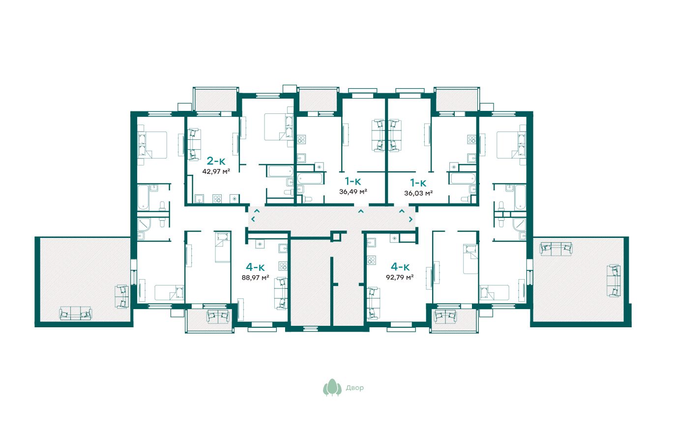 Продаётся квартира с 1 комнатой общей площадью 36.40 кв. метров на 5 этаже жилого квартала комфорт-класса "Равновесие".