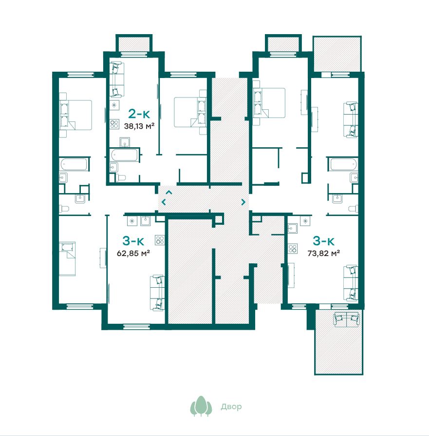 Продаётся квартира с 3 комнатами общей площадью 73.80 кв. метров на 1 этаже жилого квартала комфорт-класса "Равновесие".