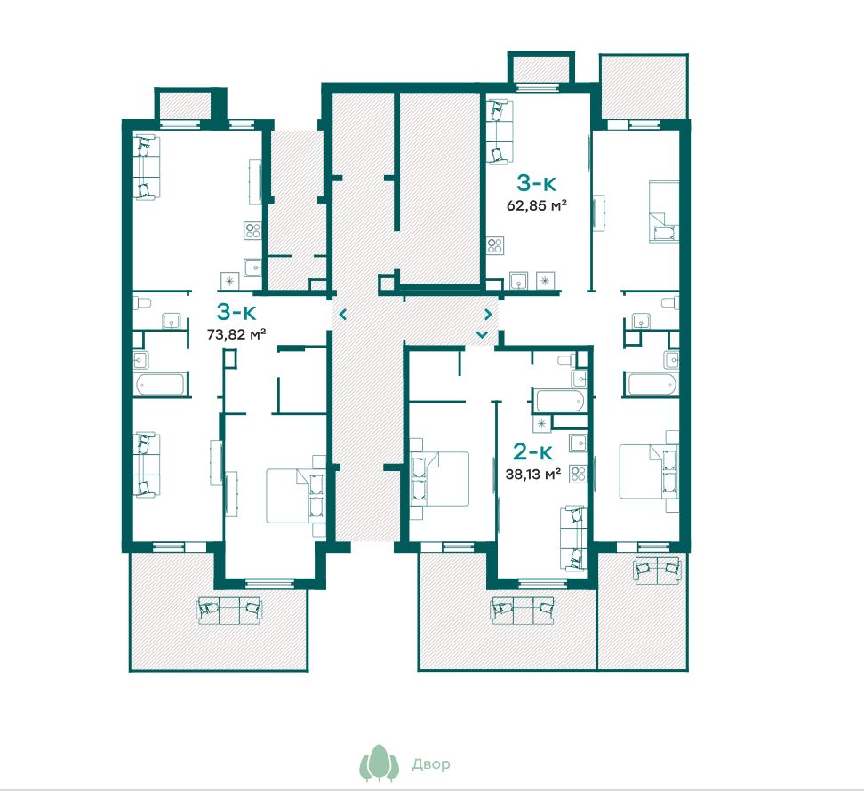 Продаётся квартира с 3 комнатами общей площадью 62.70 кв. метров на 1 этаже жилого квартала комфорт-класса "Равновесие".