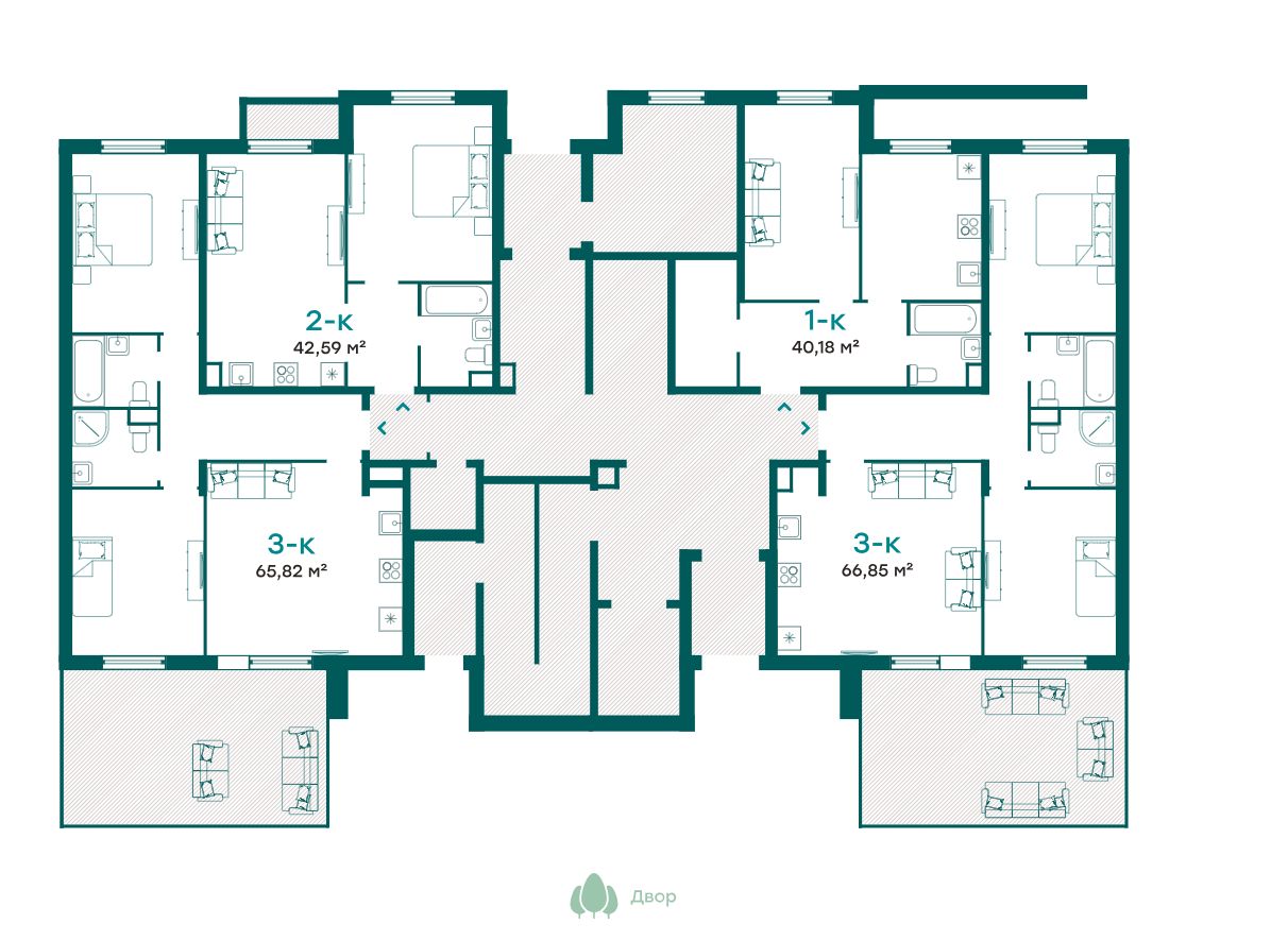 Продаётся апартамент с 1 комнатой общей площадью 40.10 кв. метров на 1 этаже жилого квартала комфорт-класса "Равновесие".