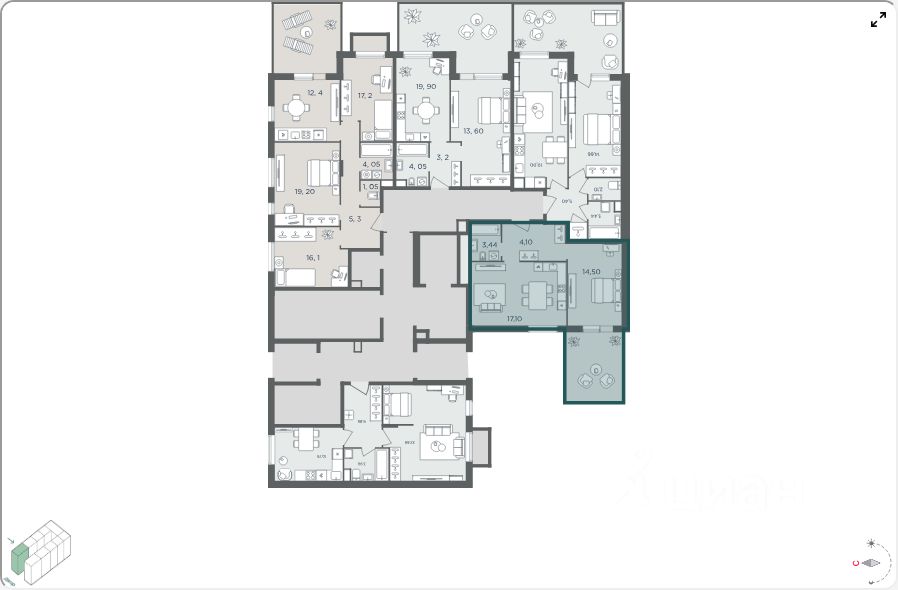 Продаётся апартамент с 2 комнатами общей площадью 42.30 кв. метров на 1 этаже жилого квартала комфорт-класса "Равновесие".