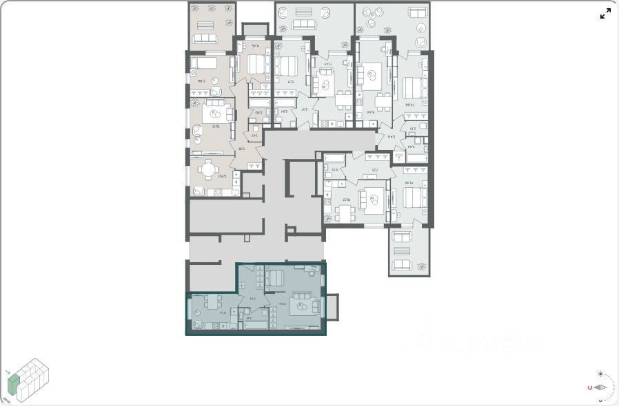 Продаётся апартамент с 1 комнатой общей площадью 44.50 кв. метров на 1 этаже жилого квартала комфорт-класса "Равновесие".