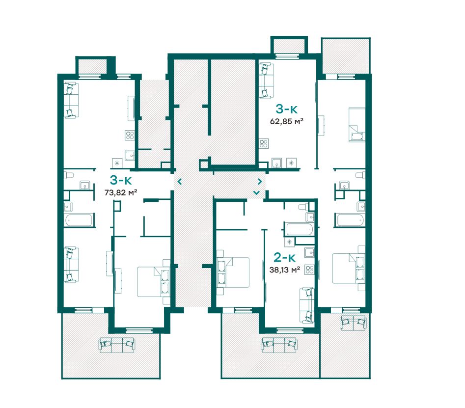Продаётся квартира с 3 комнатами общей площадью 73.80 кв. метров на 1 этаже жилого квартала комфорт-класса "Равновесие".