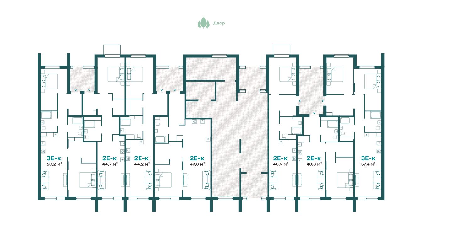 Продаётся апартамент с 3 комнатами общей площадью 57.10 кв. метров на 1 этаже жилого квартала комфорт-класса "Равновесие".