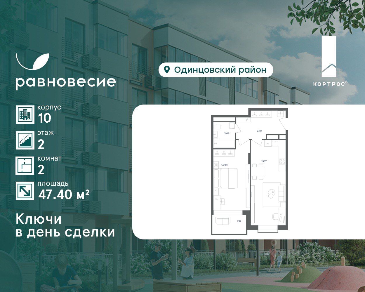 Продаётся квартира с 2 комнатами общей площадью 47.40 кв. метров на 2 этаже жилого квартала комфорт-класса "Равновесие".