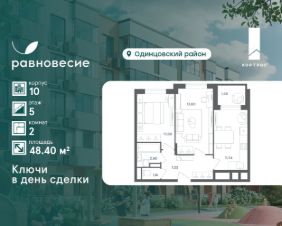 Продаётся квартира с 2 комнатами общей площадью 48.40 кв. метров на 5 этаже жилого квартала комфорт-класса "Равновесие".
