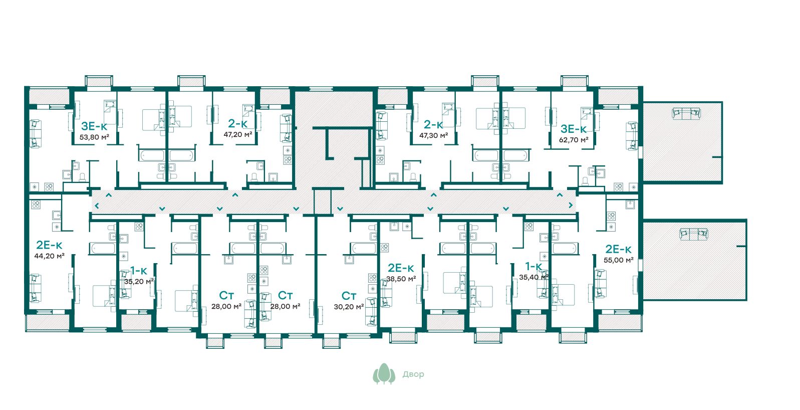 - Квартиры с террасами на последних этажах;