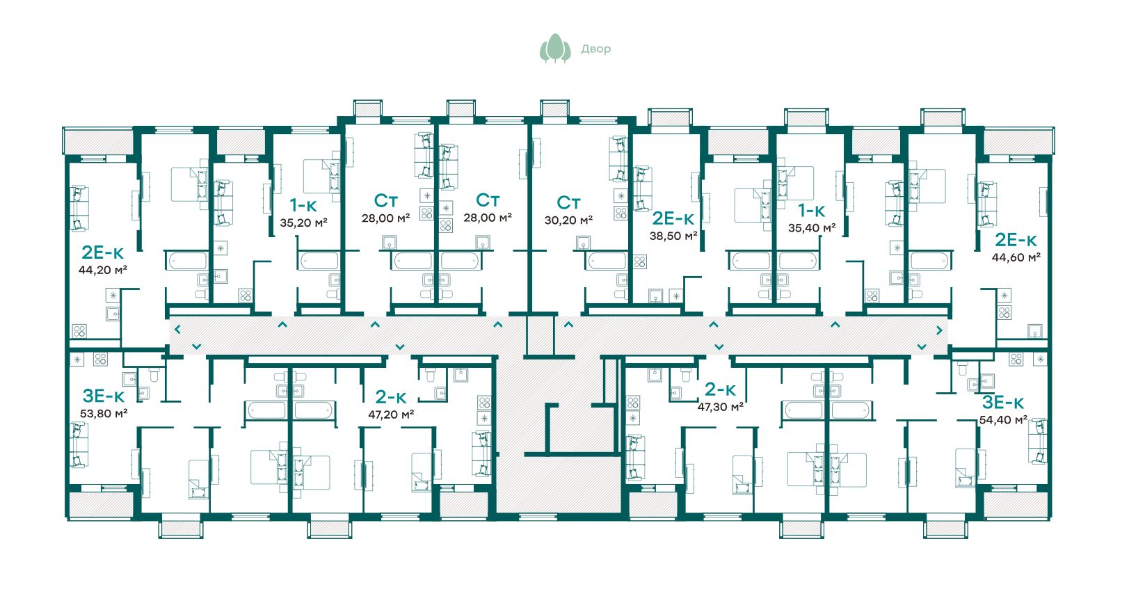 Продаётся квартира с 2 комнатами общей площадью 42.40 кв. метров на 2 этаже жилого квартала комфорт-класса "Равновесие".