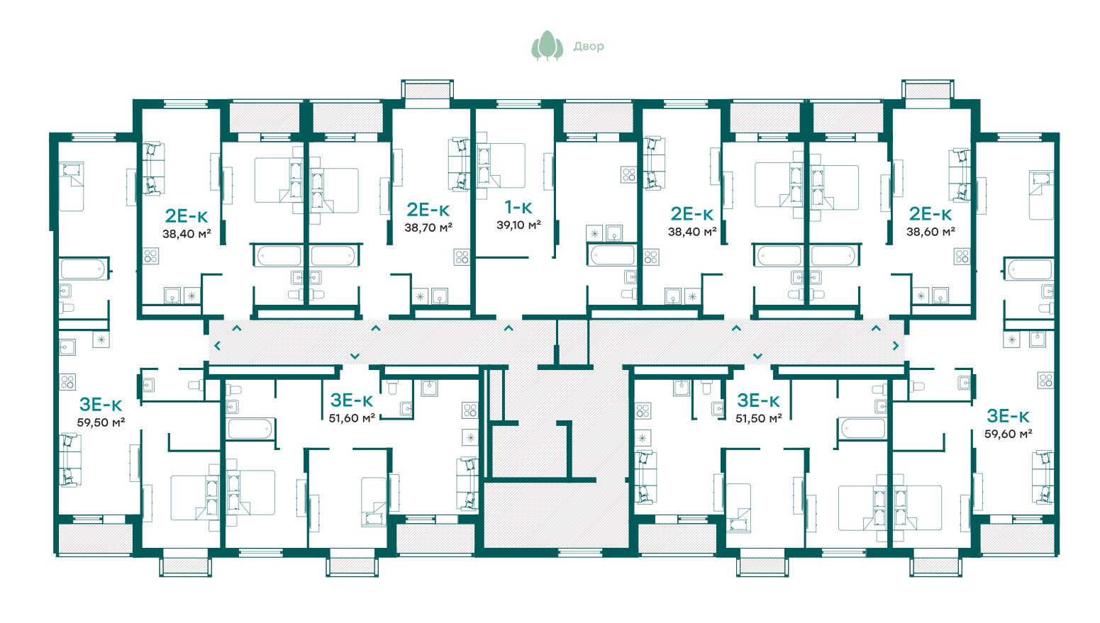 Продаётся квартира с 1 комнатой общей площадью 37.50 кв. метров на 2 этаже жилого квартала комфорт-класса "Равновесие".