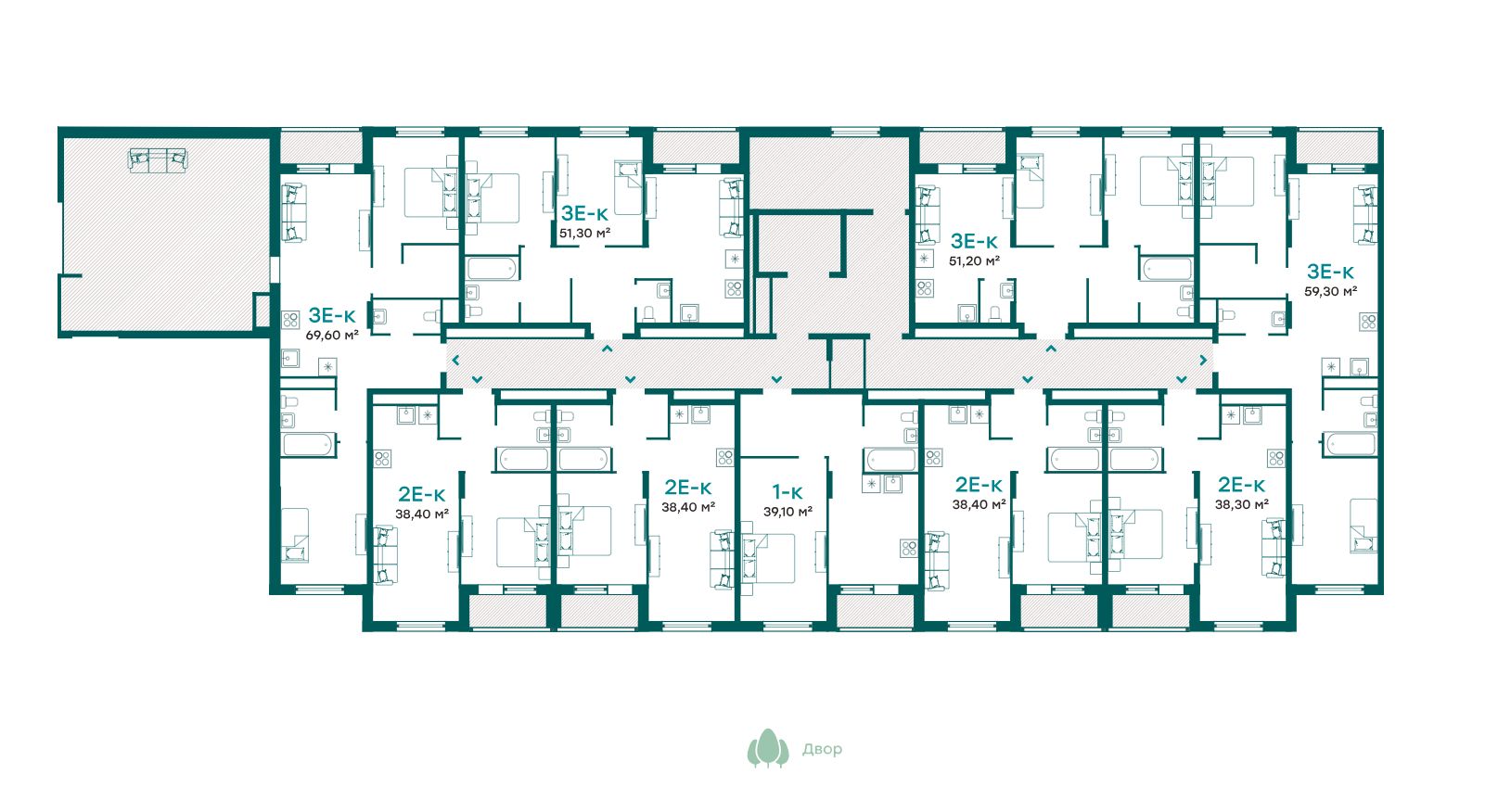 Продаётся квартира с 1 комнатой общей площадью 37.20 кв. метров на 5 этаже жилого квартала комфорт-класса "Равновесие".