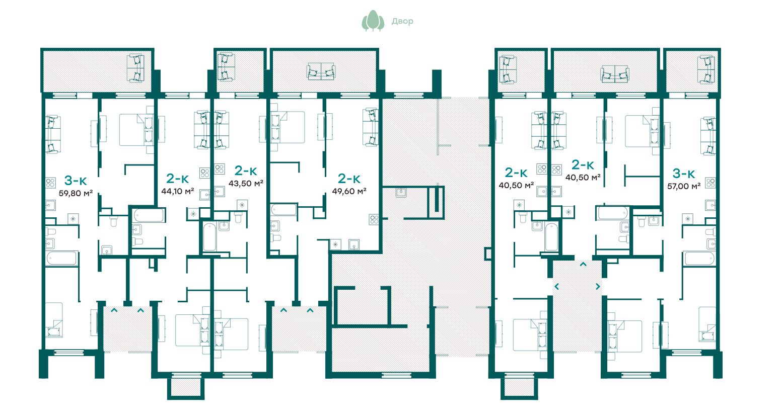 Продаётся апартамент с 2 комнатами общей площадью 49.60 кв. метров на 1 этаже жилого квартала комфорт-класса "Равновесие".