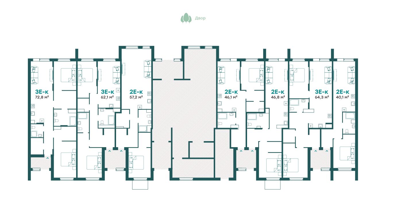 Продаётся апартамент с 2 комнатами общей площадью 46.00 кв. метров на 1 этаже жилого квартала комфорт-класса "Равновесие".