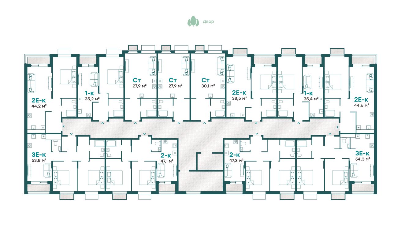- Квартиры с отдельным входом на первых этажах;