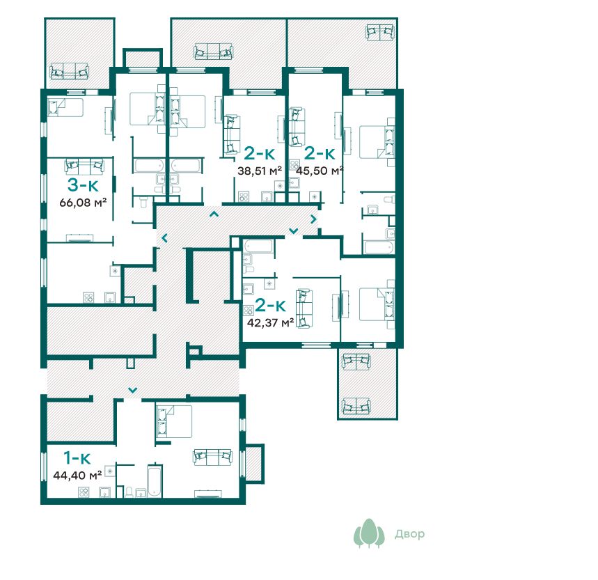 Продаётся апартамент с 2 комнатами общей площадью 42.30 кв. метров на 1 этаже жилого квартала комфорт-класса "Равновесие".