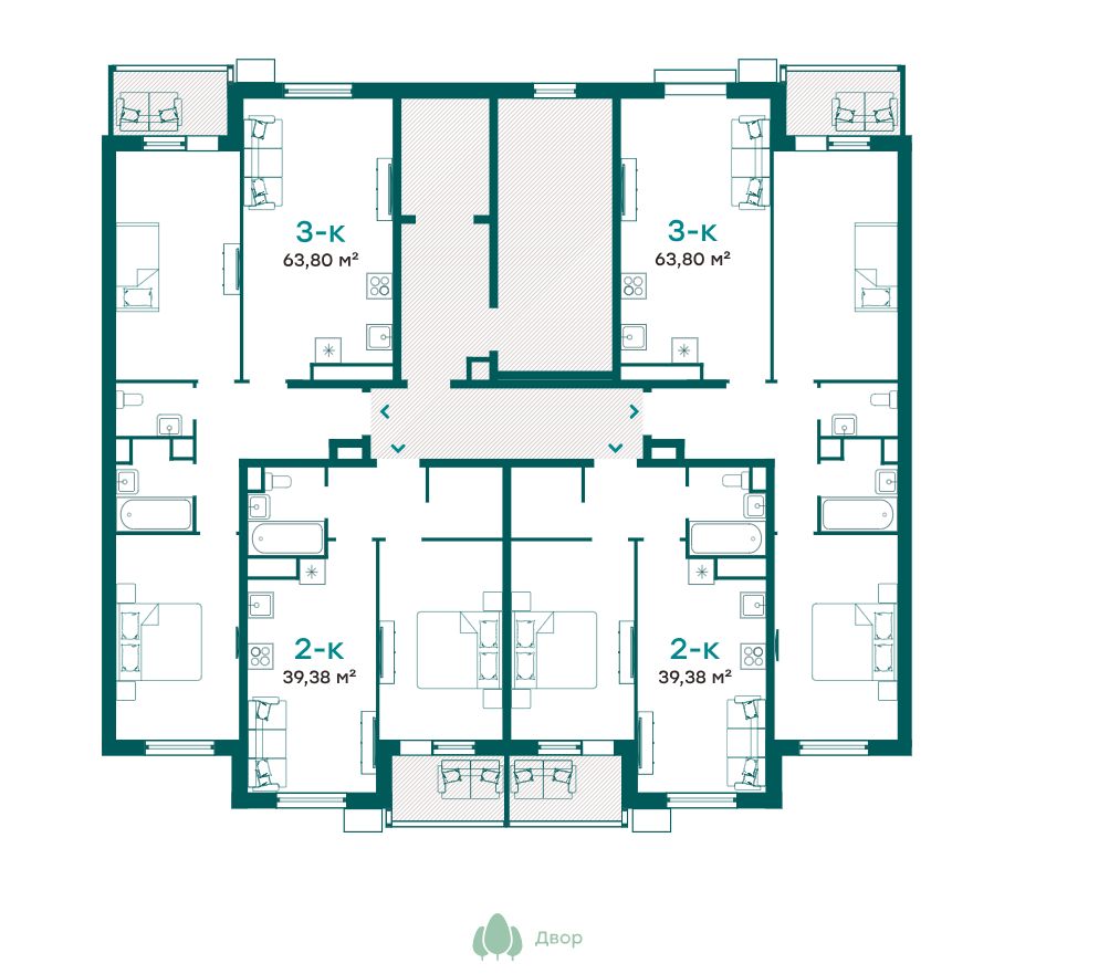 Продаётся квартира с 3 комнатами общей площадью 63.70 кв. метров на 4 этаже жилого квартала комфорт-класса "Равновесие".