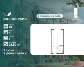 Продаётся квартира-студия общей площадью 28.50 кв. метров на 3 этаже жилого квартала комфорт-класса "Равновесие".