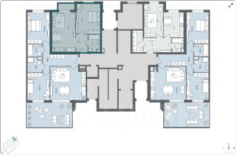 Продаётся апартамент с 2 комнатами общей площадью 42.60 кв. метров на 1 этаже жилого квартала комфорт-класса "Равновесие".