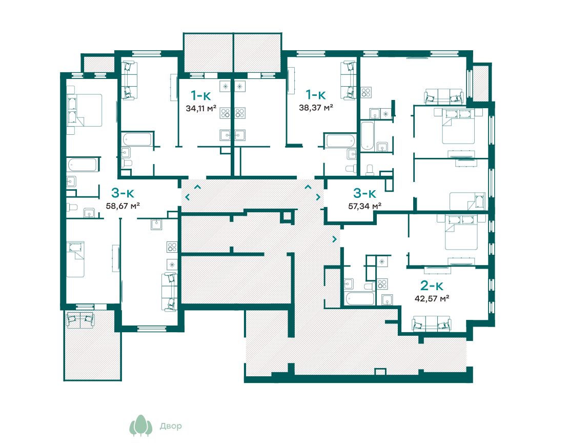 Продаётся апартамент с 1 комнатой общей площадью 38.30 кв. метров на 1 этаже жилого квартала комфорт-класса "Равновесие".