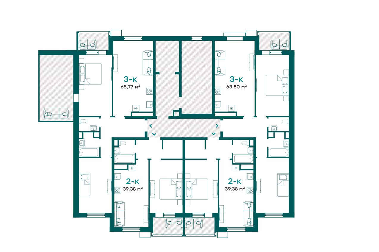 Продаётся квартира с 3 комнатами общей площадью 63.80 кв. метров на 5 этаже жилого квартала комфорт-класса "Равновесие".