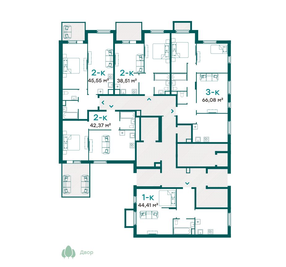 Продаётся апартамент с 1 комнатой общей площадью 44.50 кв. метров на 1 этаже жилого квартала комфорт-класса "Равновесие".