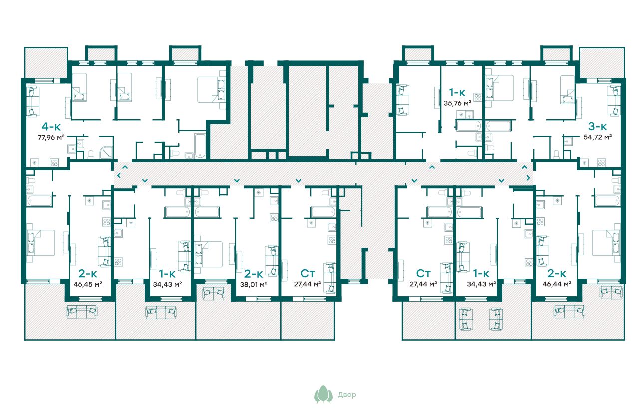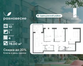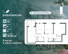 Продаётся квартира с 4 комнатами общей площадью 78.00 кв. метров на 1 этаже жилого квартала комфорт-класса "Равновесие".