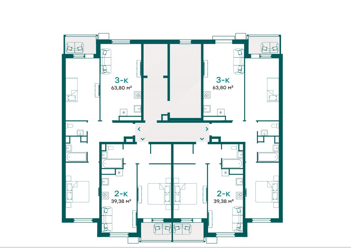 Продаётся квартира с 3 комнатами общей площадью 63.70 кв. метров на 4 этаже жилого квартала комфорт-класса "Равновесие".