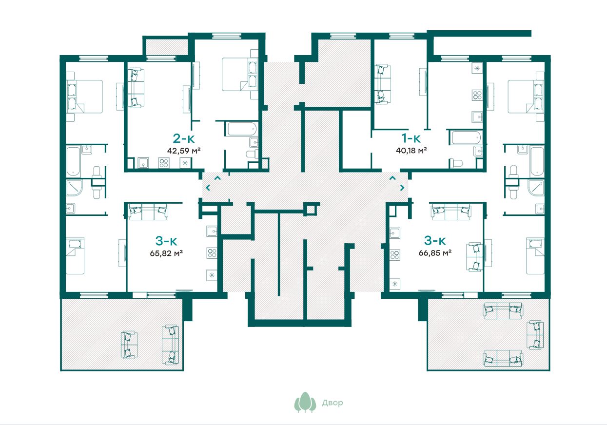 Продаётся апартамент с 3 комнатами общей площадью 66.70 кв. метров на 1 этаже жилого квартала комфорт-класса "Равновесие".