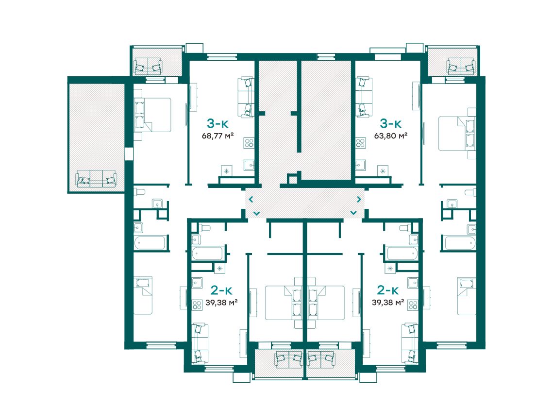 Продаётся квартира с 3 комнатами общей площадью 63.80 кв. метров на 5 этаже жилого квартала комфорт-класса "Равновесие".