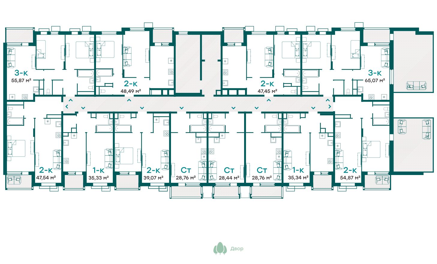 - Квартиры с террасами на последних этажах;