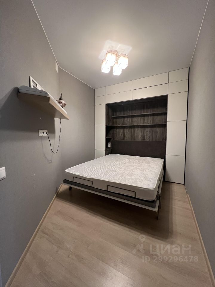 Одна из комнат оборудована шкафкроватью в потолок, в которой большое количество мест для хранения. Комната идеальна для сна, так как не имеет дополнительного источника света, но имеет вентиляцию.