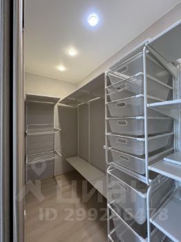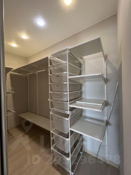 В большой гардеробной остается вся система для хранения вещей.