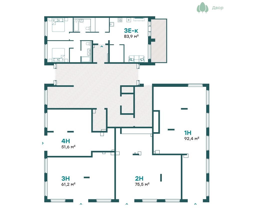 Продаётся квартира с 3 комнатами общей площадью 83.90 кв. метров на 1 этаже жилого квартала комфорт-класса "Равновесие".