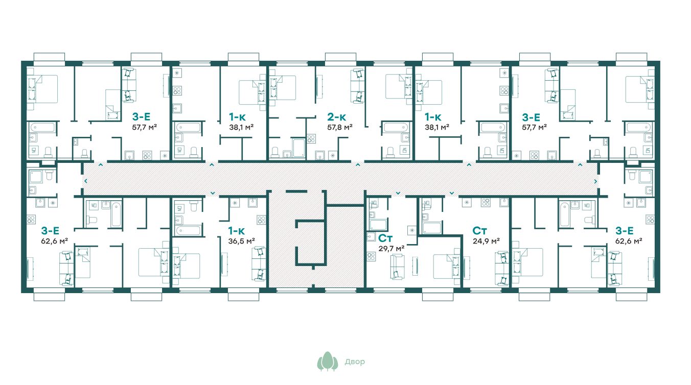 Продаётся квартира-студия общей площадью 29.70 кв. метров на 2 этаже жилого квартала комфорт-класса "Равновесие".