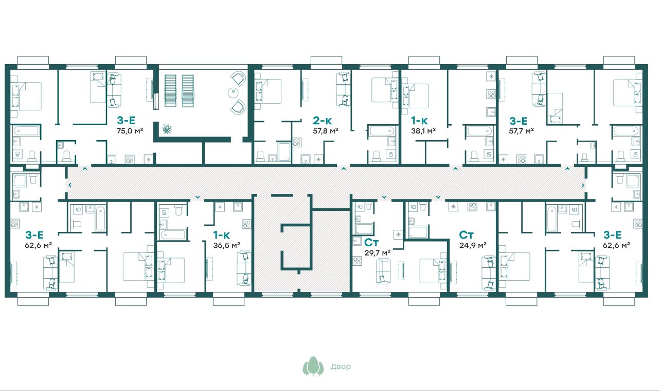- Квартиры с террасами на последних этажах;