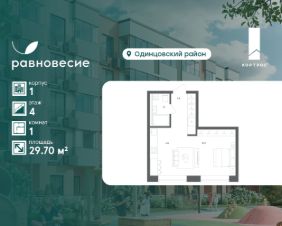 Продаётся квартира-студия общей площадью 29.70 кв. метров на 4 этаже жилого квартала комфорт-класса "Равновесие".
