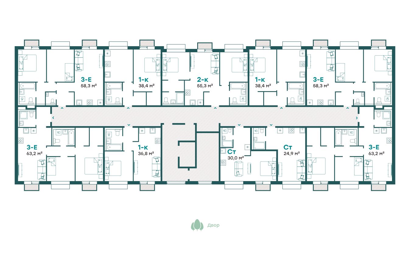 Продаётся квартира с 3 комнатами общей площадью 58.30 кв. метров на 6 этаже жилого квартала комфорт-класса "Равновесие".