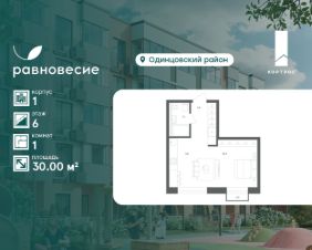 Продаётся квартира-студия общей площадью 30.00 кв. метров на 6 этаже жилого квартала комфорт-класса "Равновесие".