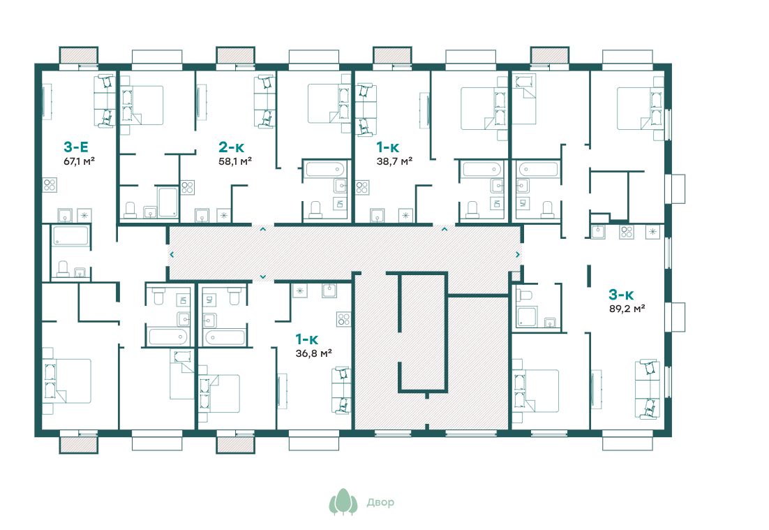 Продаётся квартира с 3 комнатами общей площадью 67.10 кв. метров на 6 этаже жилого квартала комфорт-класса "Равновесие".