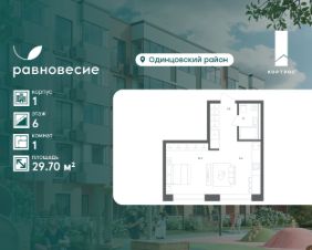Продаётся квартира-студия общей площадью 29.70 кв. метров на 6 этаже жилого квартала комфорт-класса "Равновесие".