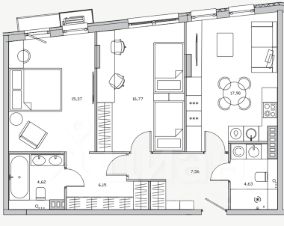 Квартира без отделки в сданном клубном доме "Эльйон" в Одинцовском районе. Свободная планировка. Просторная площадь квартиры с большими окнами и высотой потолка 3,1 м.